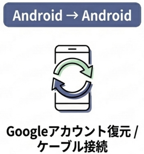 Android同士はGoogleアカウントでの移行が基本です。Googleアカウントにログインするだけで、連絡先・カレンダー・アプリなどが自動的に復元されます。写真はGoogleフォトにバックアップしておけば、新しいスマホでも同じように見られます。