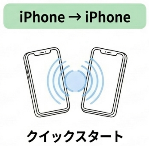 iPhone同士ならクイックスタートが最も簡単です。古いiPhoneを新しいiPhoneに近づけるだけで、写真・アプリ・設定などほぼすべてのデータを直接転送できます。iCloudを経由しないため、容量を気にする必要もありません。